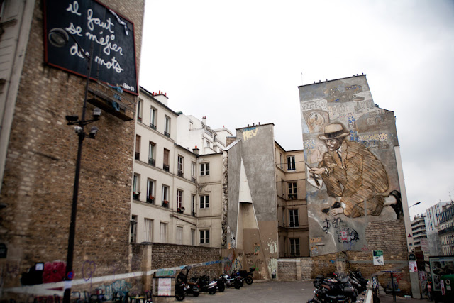 Jeg tok på meg mitt mest franske antrekk og dro på oppdagelsesferd alene mens Eirin ringte heim. Siden vi bor kanskje ti minutter unna parken Parc des Buttes-Chaumont, var dette dagens destinasjon. Jeg passa jo ikke spesielt godt inn i utgangspunktet siden jeg ikke trente, men gikk nå til toppen allikevel og satte meg ned for å lese boka mi. Og fant ut at det var ganske utaktisk å kle seg klisjéfransk når man ikke vil ha oppmerksomhet ... En slags fotokursgruppe brukte mye tid på å ta snikbilder av meg (og jeg snikbilda de tilbake), og så, da de endelig gikk, så sto det plutselig en franskmann nesten oppå meg og gjorde pushups på benken ... Så da måtte jeg gå hjem igjen. Begivenhetsrik dag i parken!